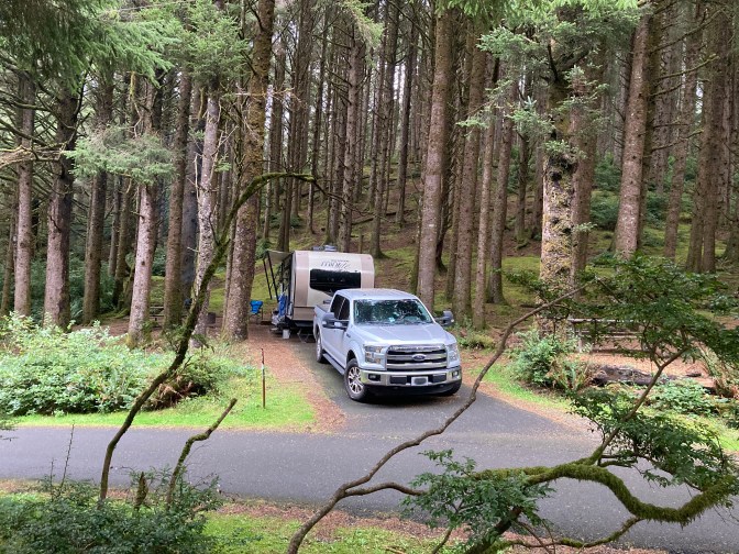 This is one of our favorite parks. It is just north of the Heceta Head Lighthouse and the Hobbit Trail. It is also just 14 miles north of Florence, OR where you can find all services including urgent medical care (ask me how I know).